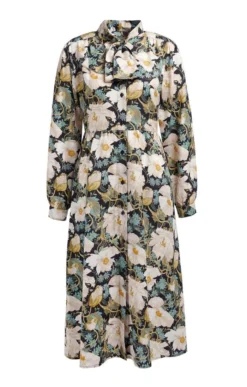 Featuring an attractive vintage-inspired print from The House of Hackney, this delightful ladies Barbour Daintry midi dress makes a fantastic foundation piece for your new season wardrobe. A calf-length garment that’s perfect for layering under chunky winter knits, it features classic lines and gathered seams at the shoulders and cuffs, while the beautiful pussy bow at the neck completes the look.