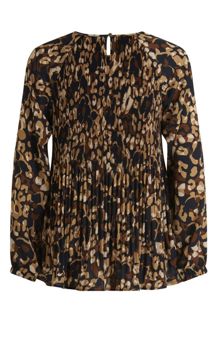 A succession of different width pleats gives a wonderful sense of movement to the animal print top by Betty Barclay. Flaring out from an empire line into a delightfully swinging drape, this is a superbly flattering piece for pairing with straight cut jeans or slimline skirts.