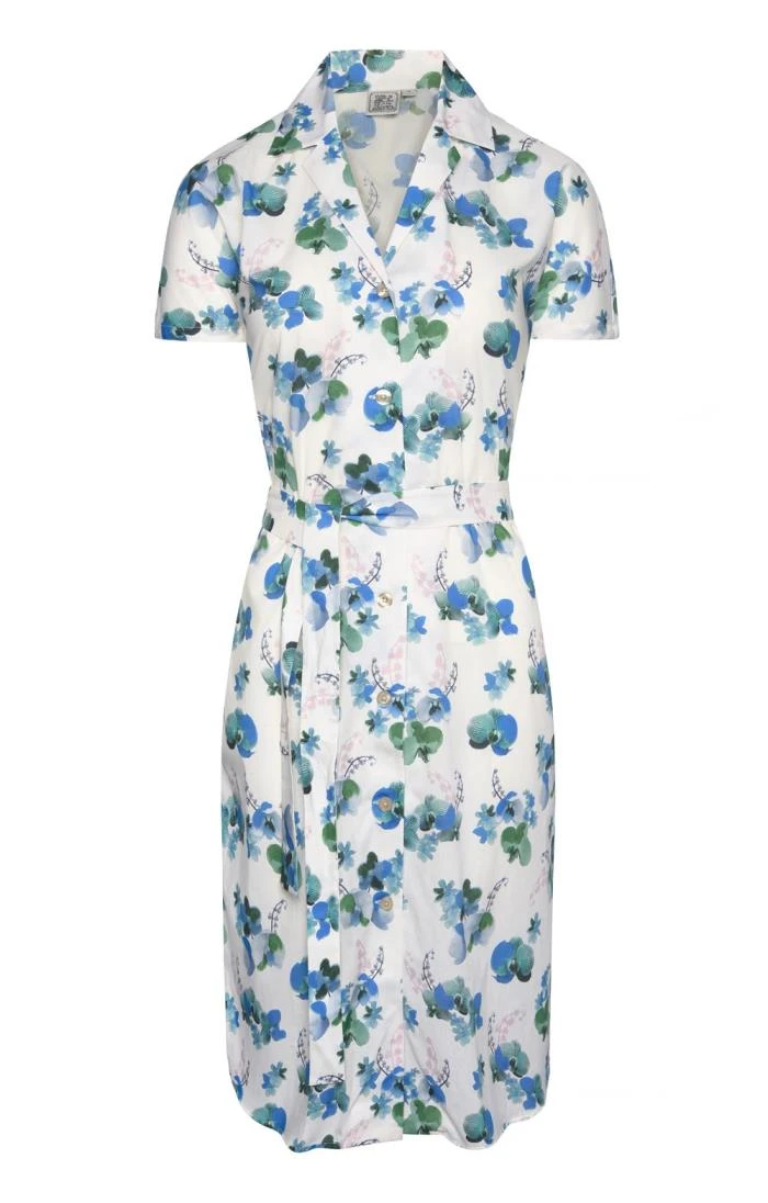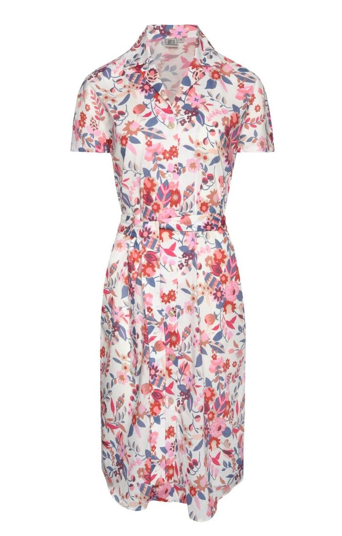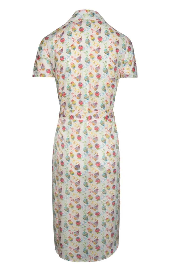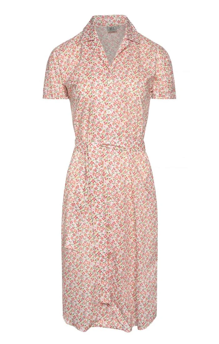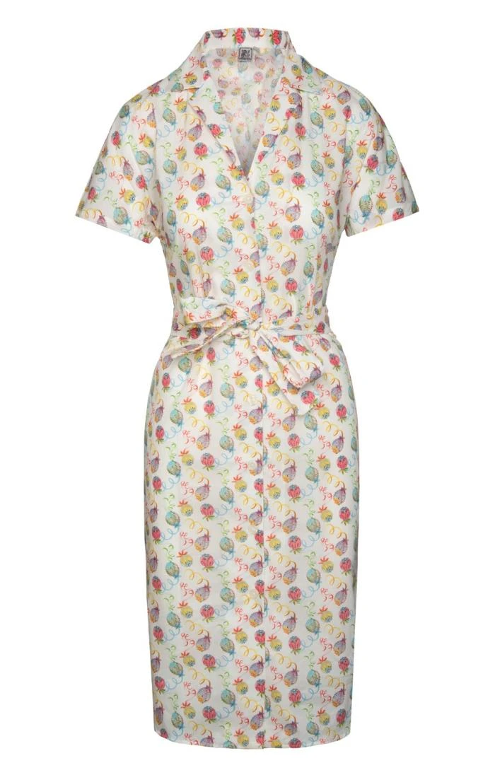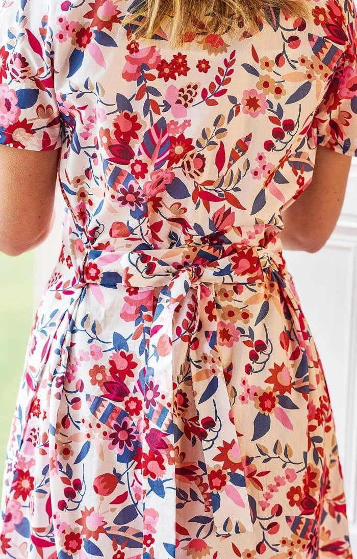 Bursting with colour and vitality, our button dress made with Liberty fabric brings a breath of fresh summer air to your new season wardrobe. A beautiful floral print blooms from the cool Tana Lawn® cotton fabric, while a lapel collar, short sleeves, button-through front and waist tie give the dress a light and fresh feel that’s just right for soaking up the summer sun.