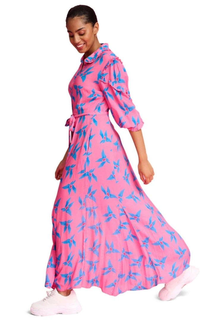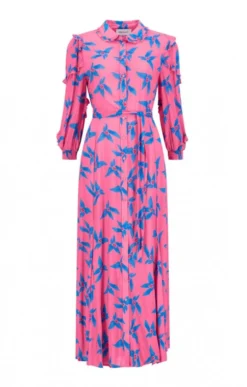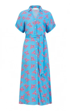 Show your true fashion colours in this extroverted button dress with tie with its vivid hand-painted origami patterns in glorious shades of summer. Its soft and sinuous cupro and viscose fabric is given a looser cut for ultimate coolness and comfort, while the fabric waist tie can be cinched or loosely knotted according to fit and form. Leave the bottom few buttons undone and envisage barefoot beach walks on sun warmed sands.
