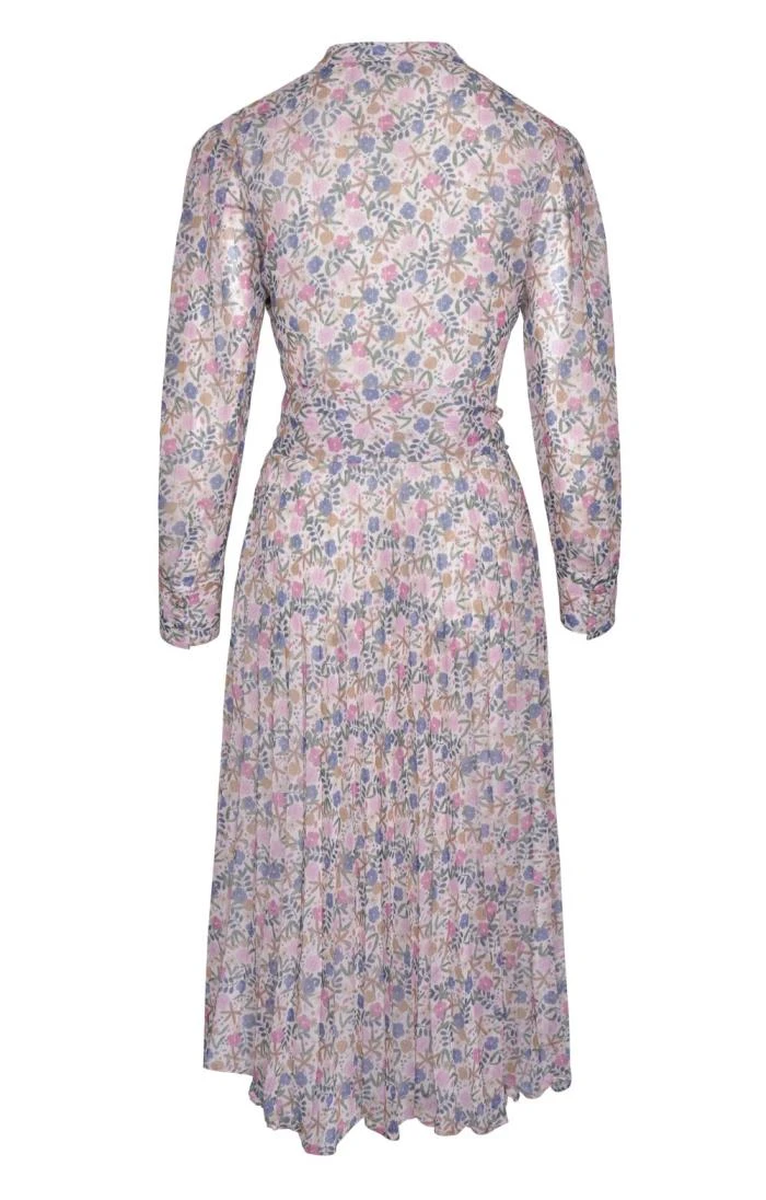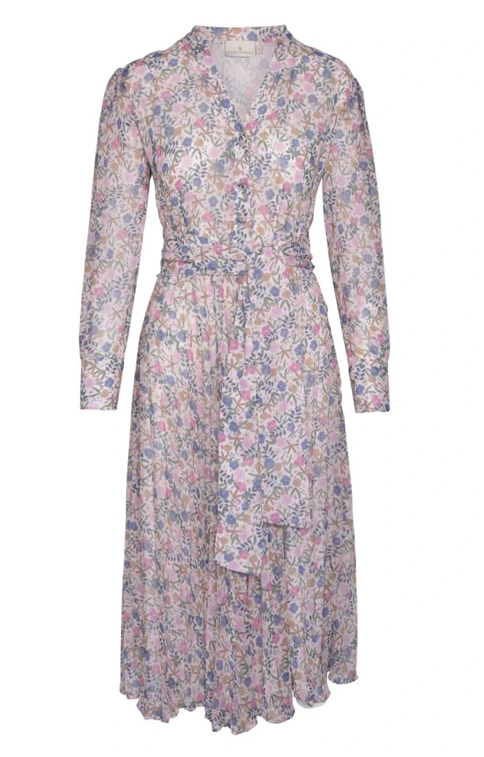 Wonderfully light chiffon swirls around the body in this endlessly alluring chiffon pleat dress. Covered buttons run down the front to a fabric tie from which delicate pleats tumble to just below the knee in this sophisticated new season design. An intriguing eveningwear option, it’s a truly captivating piece that can’t help but draw the eye.