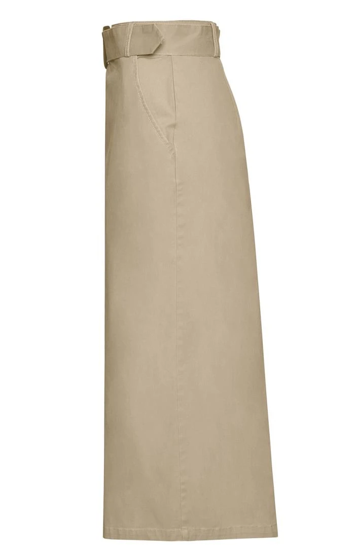 Enjoy vintage style in this confidently contemporary update of the timeless long chino skirt, complete with front slit, double stitch front seam and button-flap front pocket. Made in premium cotton for maximum comfort, take your adventurous side in an exciting direction with this new season essential.