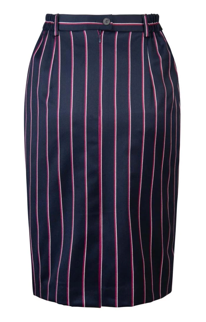 Always in style, this ladies classic skirt features a traditional pencil cut crafted from the finest quality wool. A long term wardrobe staple, the skirt has a rear zip and button closure and a discreet hem slit. It is slightly gathered at the waist for a figure-hugging silhouette and comfortable lining.