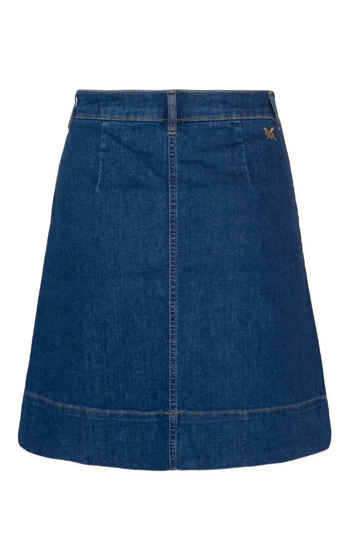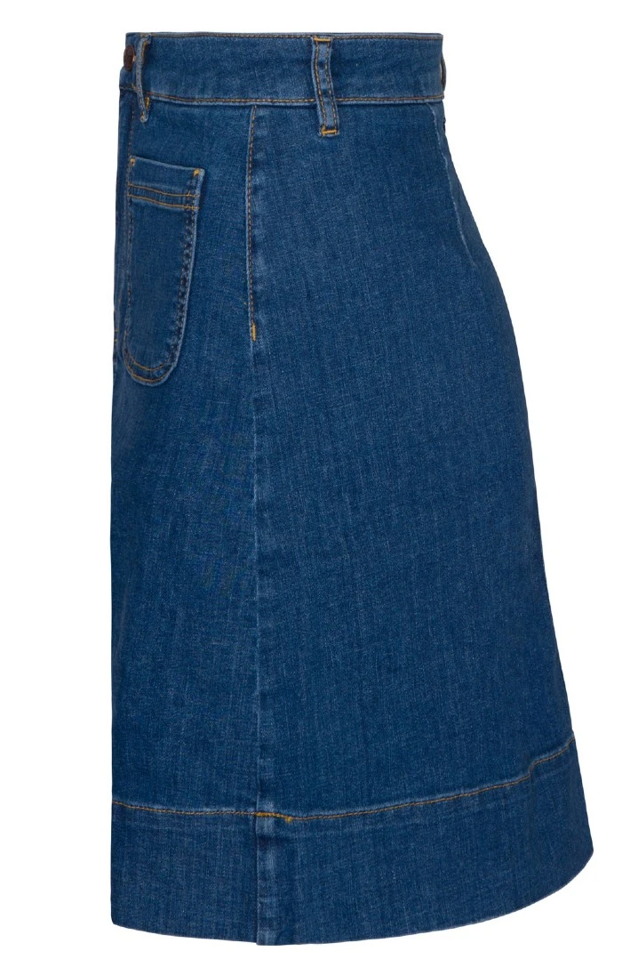 The Analee denim skirt from Crew Clothing is a noteworthy addition to your wardrobe that seamlessly combines style and authenticity. Crafted from mid-indigo denim in a vintage wash, this skirt exudes a delightful charm. Its stylish pockets and authentic stitching add character and sophistication to the skirt, while the branded button fastening and zip fly ensure a secure and fashionable fit. This versatile piece is perfect for pairing with a Breton shirt, creating a classic and effortlessly chic look. The two front pockets offer practicality without compromising aesthetics, while the subtle Crew embroidery on the back adds a touch of uniqueness.
