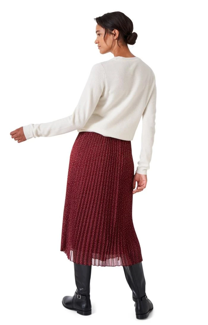 Embrace the luxury of this Crew Clothing pleated skirt, an absolute must-have for your wardrobe. This delightful pleated skirt boasts an all-over spot print that effortlessly adds a touch of fun to your ensemble. What’s more, its comfort is assured with the inclusion of a stretchy, elasticated waistband. As versatile as it is stylish, this skirt will gracefully transition through the seasons, inviting you to pair it with trainers and a casual T-shirt for a chic look now, and later, elevate your outfit with cozy boots and a snug knitted garment, making it the perfect transitional piece that effortlessly complements your ever-evolving style.