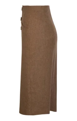 Six mock horn buttons run in pairs down the front of this impeccably sculpted flannel skirt, with twin vents at either side providing added movement and comfort. With two front slant pockets and AMF stitching providing a further touch of quality.