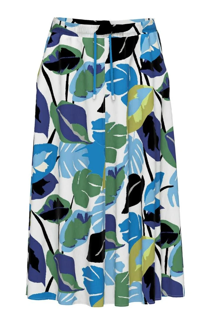 Ring the changes as the season unfolds in this cool and comfortable 100% cotton leaf print skirt from Erfo with its easy elasticated drawstring waist and casual side pockets. An appealing alternative to chinos and crops on warm days at home and on the go, mix and match with one of its bright and bold colours or pair with a simple white T-shirt for effortless coordination with a contemporary aesthetic.