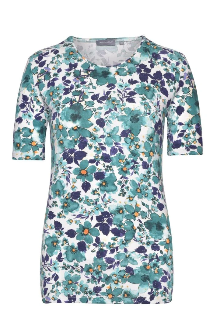Featuring a bright print and a familiar design, this ladies floral short sleeved top is a refreshing addition to your new seasonal wardrobe. The short sleeves and scooped neckline are finished with narrow hems with a matching print, while the close fit and addition of elastane gives it figure-hugging appeal.