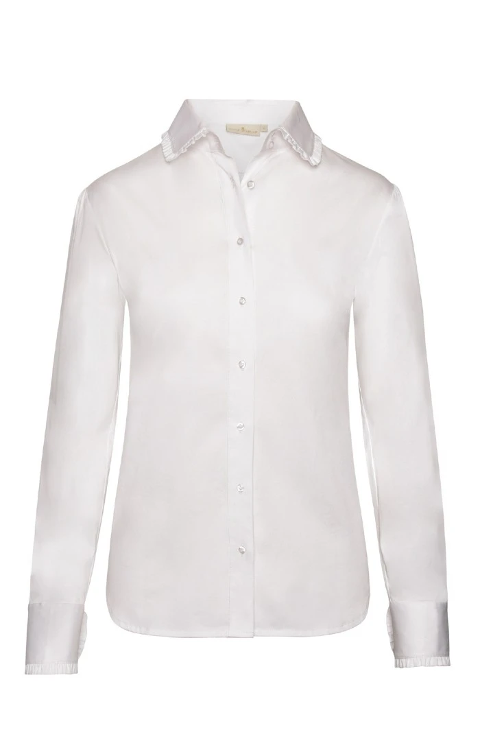 Crisp, comfortable cotton gives this classic blouse a simple yet sophisticated charm which is only enhanced by its eye-catching frill collar and puff shoulders. Delicately feminine and always charming, it’s a piece that can effortlessly rise to any occasion.