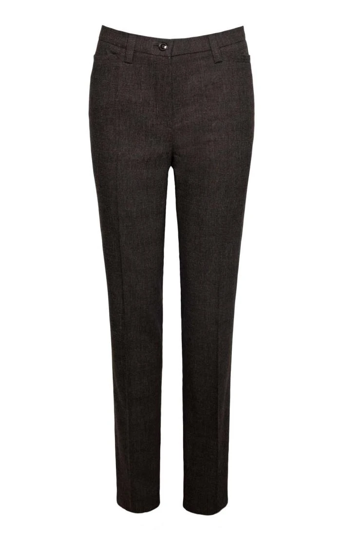 Specially created with extra width over the middle for a more comfortable fit, these wool-rich Kayla Glencheck trousers from Gardeur flatter all shapes and sizes. The warm checked fabric is crisply creased for long-lasting smartness while the high-waisted cut and straight-legged styling combine ease of wear with the enduring elegance of a classically tailored slack.