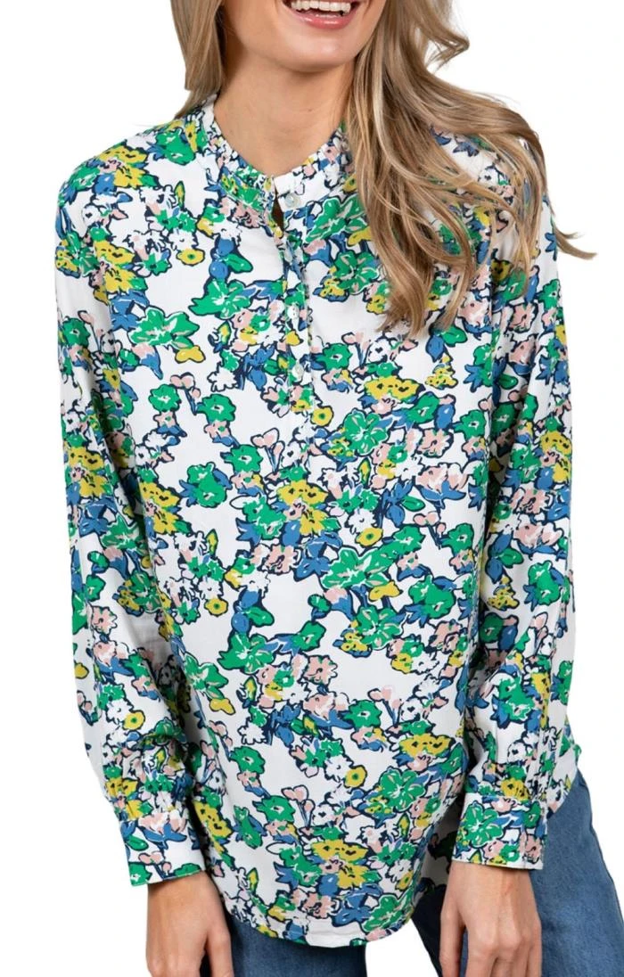 Crafted from a woven ecovero viscose for a softly draping flow and finished with feminine frills to the neck and cuffs, the Lily & Me Coppice top can be worn loose or tucked in according to outfit or occasion. Meeting friends for lunch? Create a contemporary silhouette with wide legged linens and sneakers. Relaxing at home? Give it a laid-back look over jersey jeggings and ankle boots.
