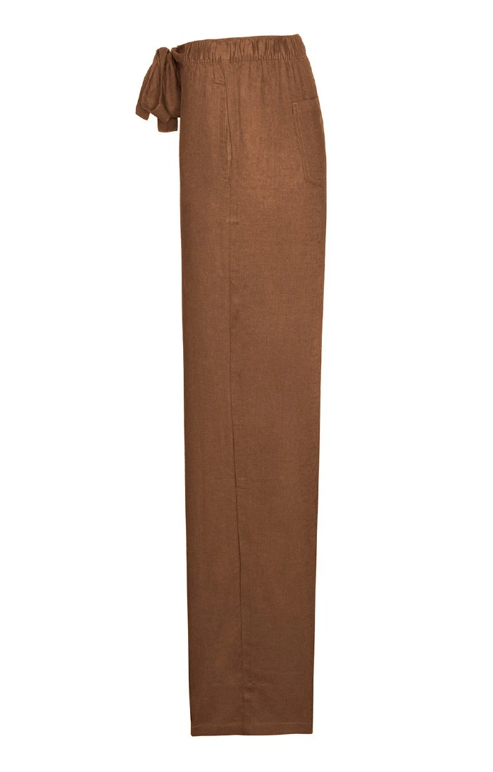 Live the linen look in these summer-ready linen mix trousers from The House of Bruar collection. Crafted from a fluid linen and viscose blend for superior softness and flowing lines, the sleek semi-fitted shape is finished with side seam front pockets and back patch pockets. The elasticated waistband with feature drawstring tie is uncompromisingly comfortable whilst never scrimping on style.