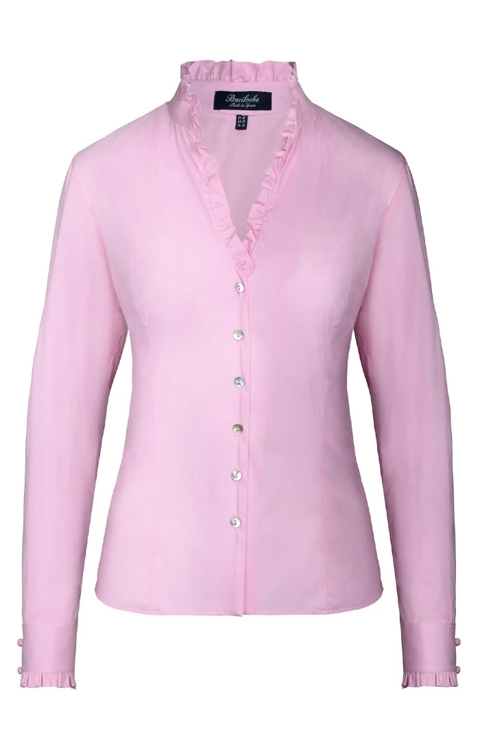 The beauty of the ladies Lucar frill collar shirt is in its simplicity and charm. Designed in stretch fabric that creates a beautiful silhouette, it features double buttoned frill cuffs and a sweeping V-line frilled collar for an elegant look. The organic cotton keeps you cool, and it wears wonderfully well either tucked into trousers or left loose.