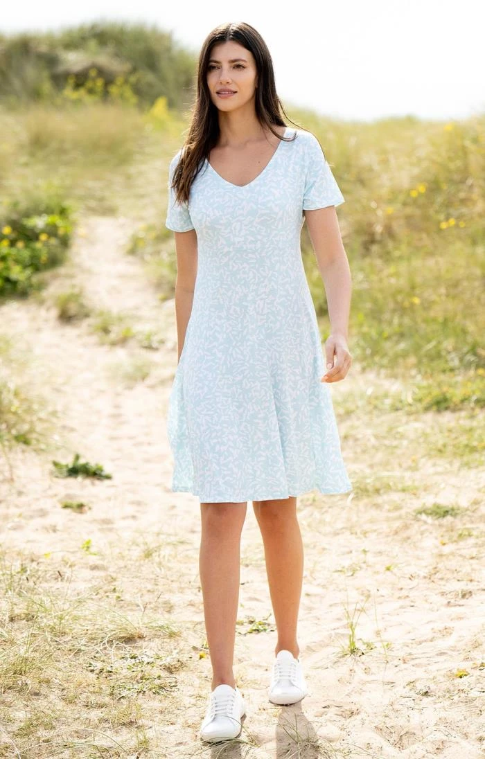 Simple and pretty, this ladies Marble short sleeved summer dress marks the beginning of warmer weather and longer days. Featuring a discreet all-over print and monochrome-effect look, it boasts a deep V-neck collar and a knee-length finish.