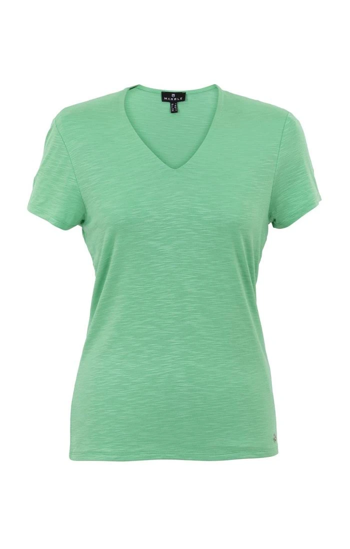 For a simple but elegant summer staple, this ladies Marble short sleeved T-shirt is a stylish top crafted from premium fabric. The classic V neckline and capped sleeves give the soft material a beautiful shape that looks wonderful paired with your favourite jeans.