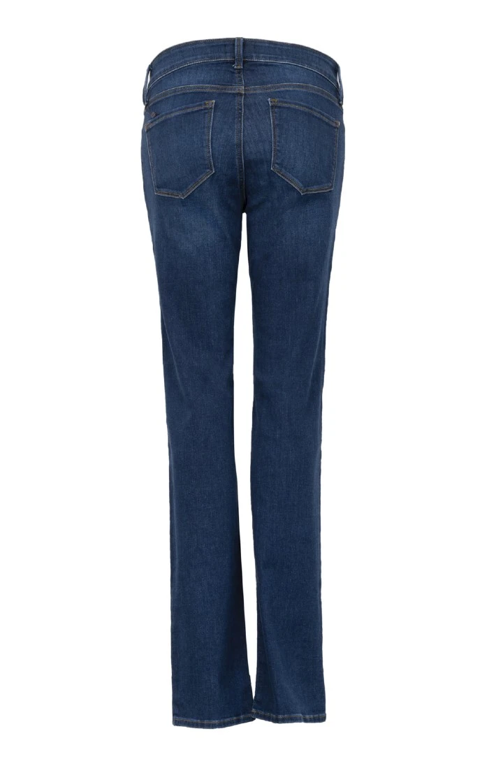 These fabulous NYDJ straight leg jeans are designed to make you look and feel a size smaller. A patented criss-cross panel helps flatten in the front while lifting and smoothing in the back, working so well that we recommend that you order a size smaller than you usually wear. The rise sits just slightly above the natural waist to provide not only a slimmer silhouette, but also comfort with no gaping at the waistband. A classic cut in five pocket style, with all of the benefits of these superbly fitting jeans. The straight cut leg shape lengthens your silhouette.