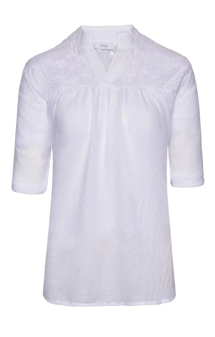 Falling in a flattering smocked line from gathers above the chest, this billowy oversized blouse showcases a pretty embroidered panel across the shoulders and three-quarter length elasticated sleeves. Ripe and ready for pairing with summer linens and cotton crops, you’ll form a fruitful connection with this expressive and adaptable new season essential.