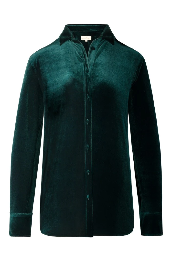 Animated by a scintillating play of colour as it catches the light, our oversized velvet blouse is crafted in a larger size for a more contemporary look and feel. With a beautiful drape and wonderfully warm feel, it’s a versatile piece that will see many an outing from your wardrobe.