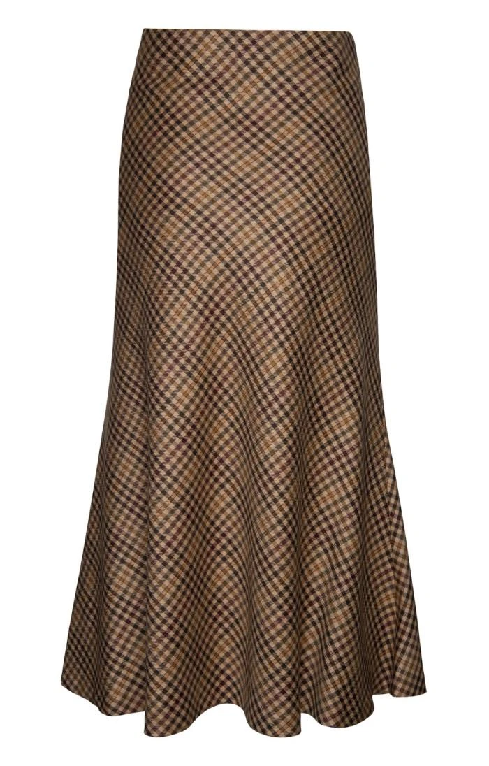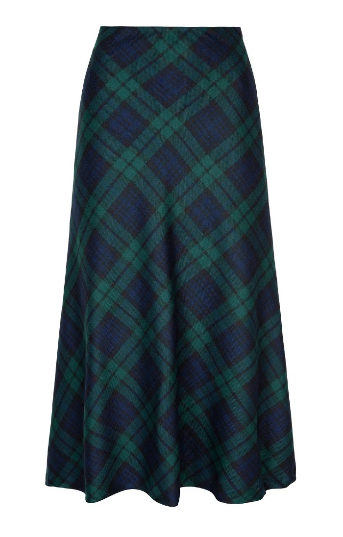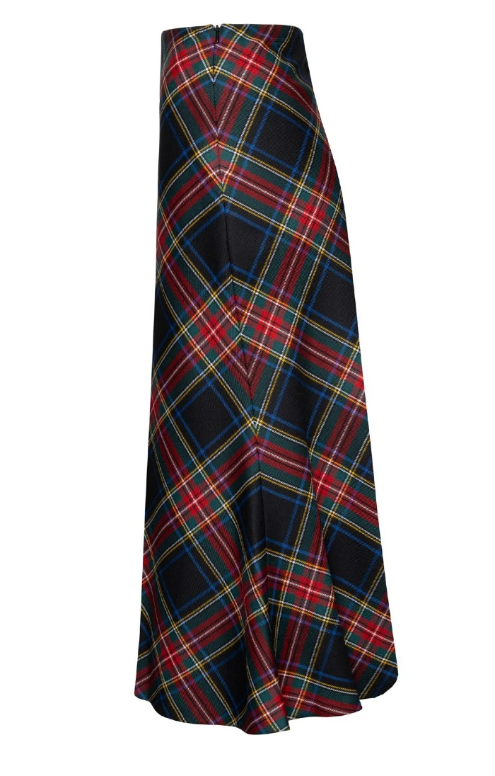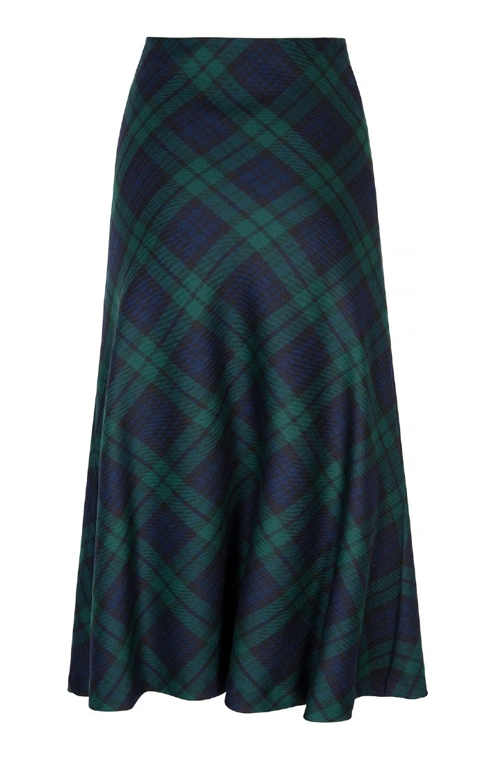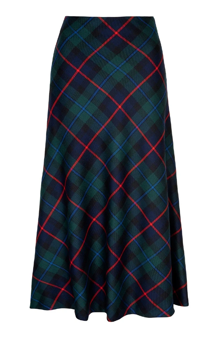 This impeccable plaid bias skirt features a subtle flare towards the hem that gives it a wonderfully feminine, graceful flow. With an unmistakably Scottish feel thanks to the fashionable bias-cut plaid design, this skirt can be easily dressed up or down to form the foundation of any number of intriguing country outfits. Always smart yet never severe, this comfortable plaid skirt blends versatility with winning style. Made with pure wool and fully lined.