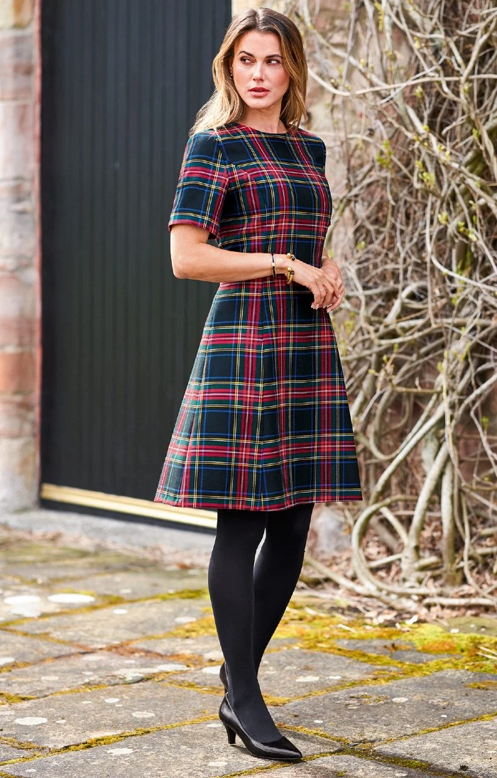 Simple in style yet with an unassuming elegance, this new swing dress is the perfect canvas to show off our classic Scottish plaids. An unfussy round neck and set-in sleeves complete this design which you can really make your own with canny accessorising.
