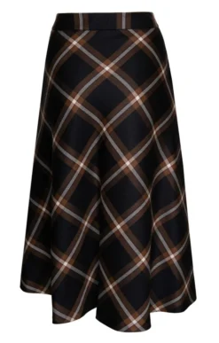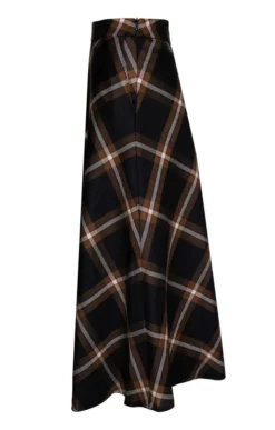 Cut on the bias to accentuate its beautiful drape, our swing skirt is crisscrossed with our evocative new plaid for a vivacious and dynamic look that can’t help but catch the eye. Created with belt loops and falling to just below the knee, this elegant skirt will elevate any ensemble this season and beyond.