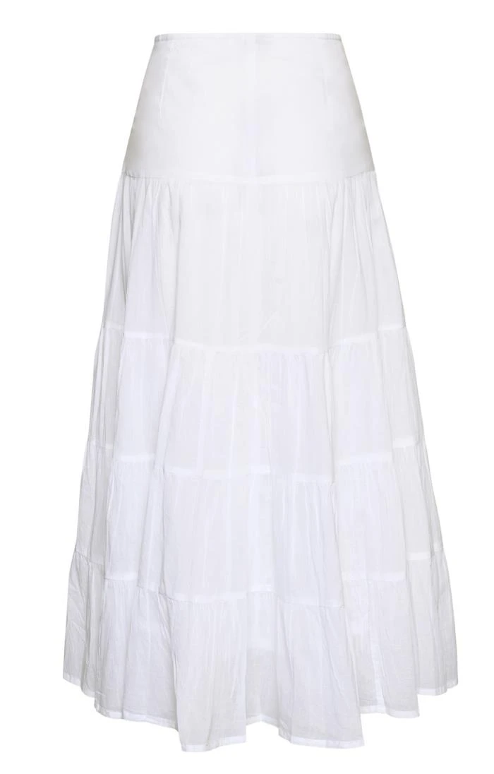This gorgeous new season tiered skirt from Pomodoro is wonderfully light and airy thanks to its pire cotton construction and sophisticated tiered design. Cut in an A-line shape with shaping darts to front and back, it has a flowing, graceful movement that gives it an extra-special character all of its own.