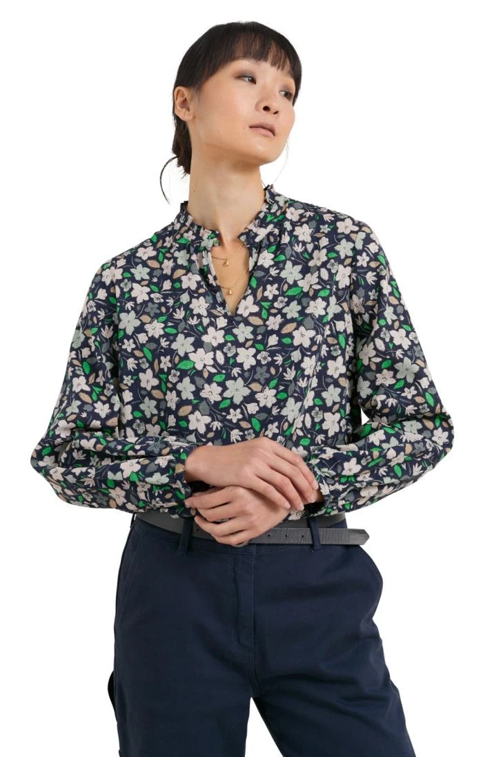 Another spectacular hand-drawn Seasalt print takes the limelight in this cotton blend Sea Flow top with its feminine ruffle collar and gently gathered cuffs. The versatile A-line form and relaxed cut flatter all shapes and sizes and it can be tucked in or left loose according to what you choose to pair it with. Embrace all-season dressing with cosy layers in chillier months and cool cottons when the sun starts to shine.