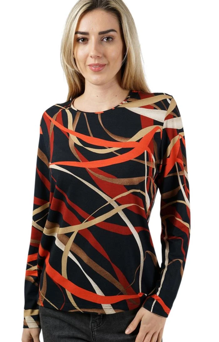 Embrace elegance and flair with this swirl pattern long-sleeve crew neck top—a captivating blend of sophistication and style. Boasting an eye-catching swirling pattern, this top effortlessly transitions between formal and casual settings, offering versatile wearability. With its long sleeves adding a touch of sophistication, it’s crafted to be your go-to piece for various occasions. The mesmerising swirling pattern adds intrigue, making it a standout addition to your wardrobe.