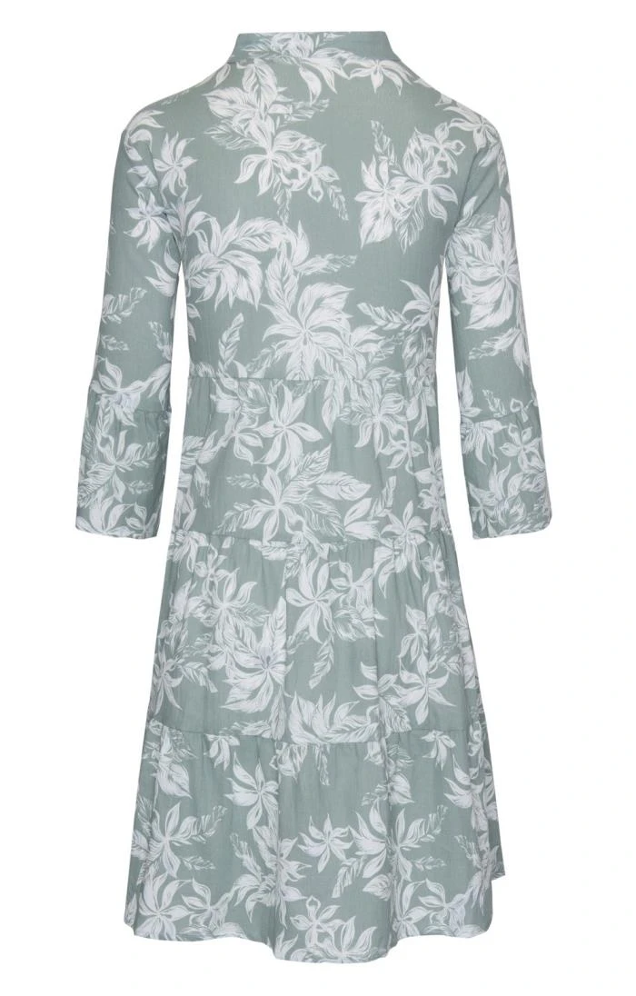 Designed for added movement and eloquently framed, this ladies tiered dress with a stunning V-neckline ensures long-lasting quality and slides on with sandals perfectly for a day in the sun. Light, floaty and oversized for an easy fit, this dainty dress has a pretty printed floral design with neat buttons to the bodice. With flared cuffs on the three-quarter length sleeves, its feminine appeal is elevated by just enough detailing – a dress perfect for summer. You’ll feel great and look amazing. Complement it with bold colour-block accessories to get yourself noticed.